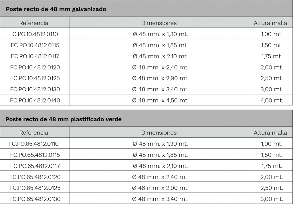 Fabricados en acero galvanizado y verde, diámetro Ø48mm.