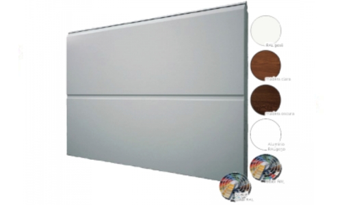 El panel está disponible en múltiples acabados: colores estándar, imitaciones madera y versión en aluminio.