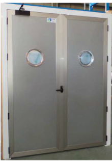 La puerta pivotante DS1 de 2 hojas está diseñada para separar zonas de trabajo en entornos técnicos como almacenes climatizados, oficinas, vestuarios, salas de producción o laboratorios. Con estructura encastrada y fabricación en chapa lacada, ofrece un diseño funcional, higiénico y de fácil mantenimiento. Su formato de doble hoja facilita el paso de equipos y mercancías en áreas de alta circulación.