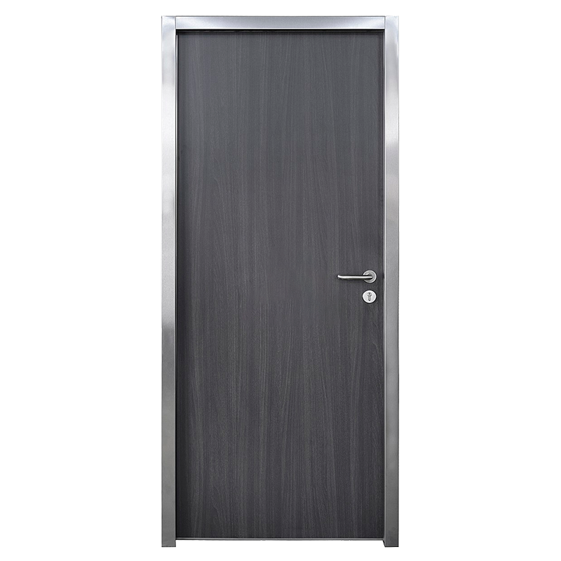 La puerta técnica E-Quo está construida con dos planchas de acero galvanizado de 0,5 mm, ensambladas sin soldaduras y revestidas con paneles laminados estratificados de alta presión (HPL) de 0,7 mm. Su estructura panelada se remata con un perfil perimetral en acero galvanizado lacado o inoxidable de 0,8 mm, garantizando solidez y durabilidad.