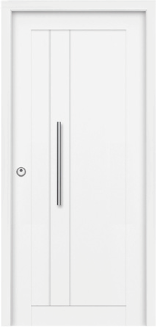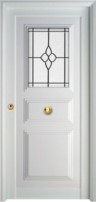 El modelo CLÁSICO se ofrece en imitación madera (93–96 × 200–213 cm) y en blanco o RAL (93–105 × 200–213 cm), adaptándose a distintos estilos y necesidades de seguridad.